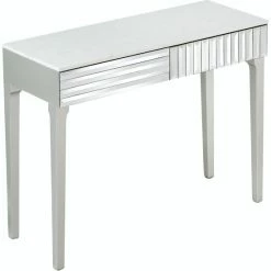 Camden Isle Carla 40 In. Antique Silver Rectangle Glass Console Table Coffee & Side Tables