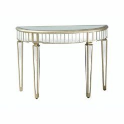 Camden Isle Celeste 43.25 In. Antique Silver Half Moon Glass Console Table Coffee & Side Tables