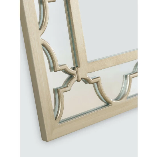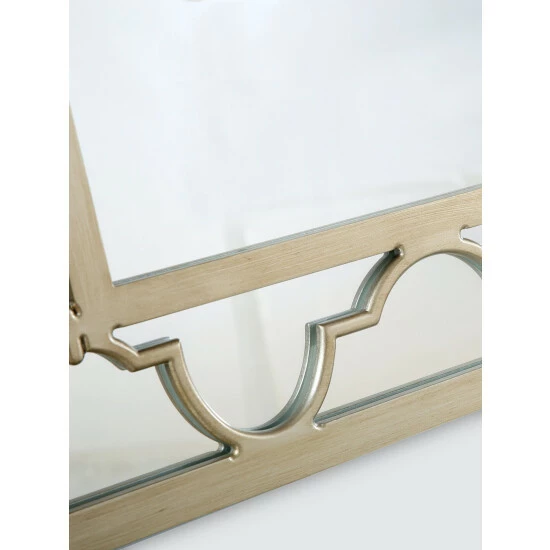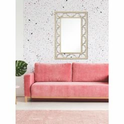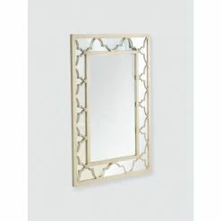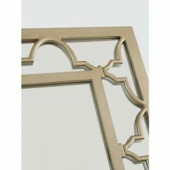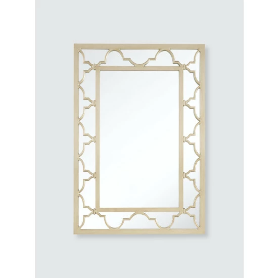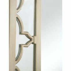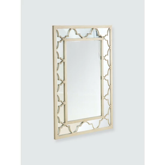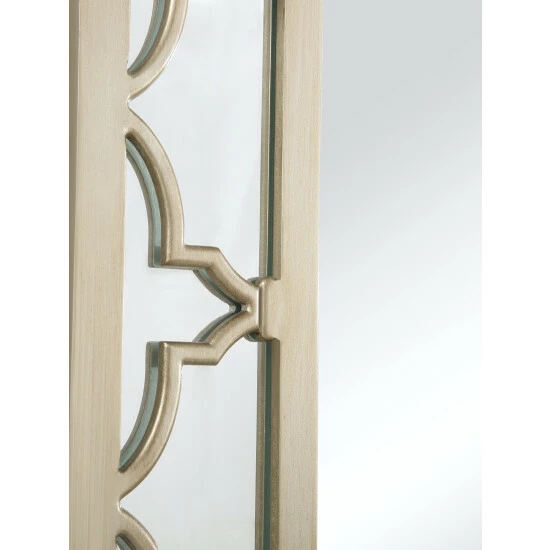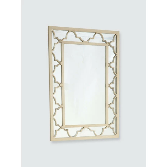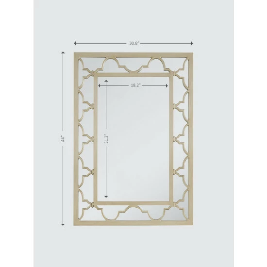 The Arielle accent mirror features a heavenly champagne colored frame with a beautifully designed pattern that adds a touch of sheer elegance to your bedroom or entryway. It blends effortlessly into both contemporary and traditional decor and adds an irresistible charm to any room. Hang it on a muted green background to create a shabby chic look or pair it with funky wall art for a more fun look. This 44″ H x 30.8″ W mirror has a high-quality silver backing. Ready to hang either vertically or horizontally with pre-attached hanging mounts.
