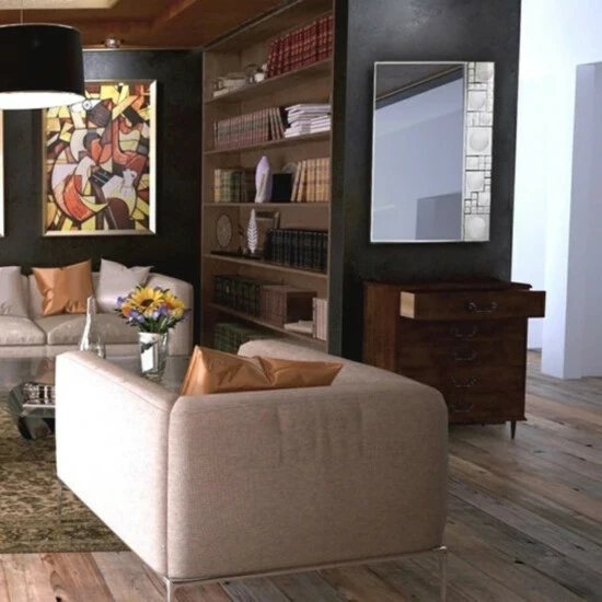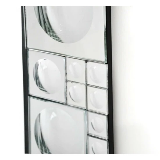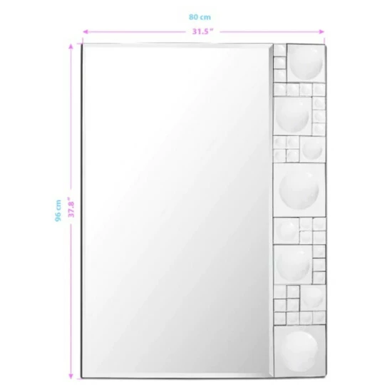 The Bubbles Geometric Mirror is a chic, clear mirror that adds a stylish flair to any room in your home or office. Dress up a shabby chic table in my entryway. The mirror keep things simple with a clear frame but adds a fashionable touch with a collage of different sized circles and cubes which can be positioned vertically on the right or horizontally on the top. Beveled 31.5 x 37.8 mirror with a high quality silver backing. Ready to hang either vertically or horizontally with pre-attached hanging mounts