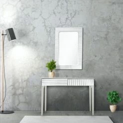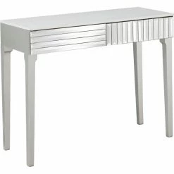 Bright and glamorous, Carla Mirror Console is a contemporary piece that brings a touch of sophistication to your living space. The console features an interesting geometric design on its drawers, creating elegant and alluring aesthetics. With its silver antique finish, this console is sure to grab your guests’ attention.