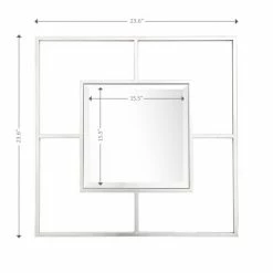 The Covington Square Accent Mirror gives a distinctive touch to that small wall in your home. Or add two in a row on your bedroom wall to create an impressive look. Its beveled edge and square shape add a whole new look to your contemporary or bohemian home decor. Beveled 23.6 x 23.6 mirror has a high quality silver backing. Ready to hang either vertically or horizontally with pre-attached hanging mounts.