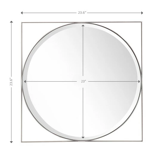 Made from the basic geometric shape, the Covington Square Accent Mirror is the quintessence of simplicity. The square frame perfectly complements the round beveled mirror and stands out in both tradition and modern aesthetic. It can be used to create an illusion of space, but can also be added as an elegant decorative piece to your contemporary interior design. Beveled 23.6 x 23.6 mirror has a high quality silver backing. Ready to hang either vertically or horizontally with pre-attached hanging mounts.