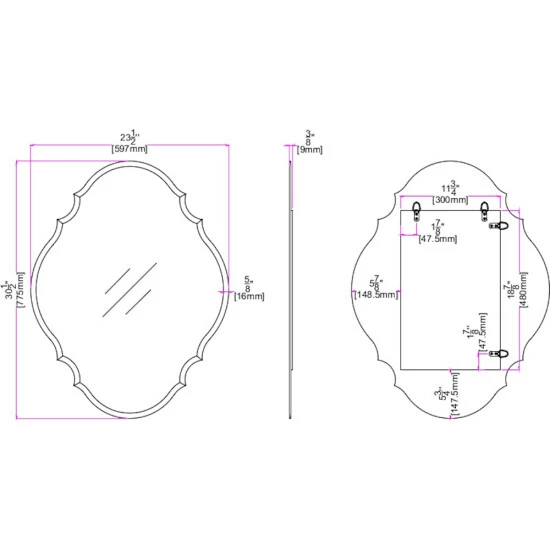 Give your contemporary decor a classy update with the simple yet stylish Dalia Mirror! The beveled mirror has a unique symmetrical shape with scalloped edges that complements neutral and bright tones alike and adds a touch of elegance in your home. With a minimalistic design, this mirror is sure to be the focal point of any room it is placed in.Beveled 24 x 30 mirror has a high quality silver backing. Ready to hang either vertically or horizontally with pre-attached hanging mounts.