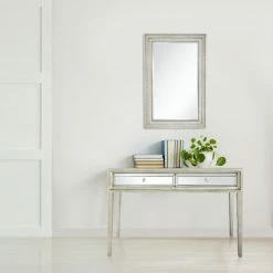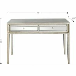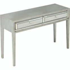The Delaney Console boasts the combination of modern elegance and traditional charm. It adds a new dimension to your decor with a mirror finishing on drawers while the steel knobs perfectly complement its antique silver body. Use the console as a decorative object and utilize the two drawers to store everyday accessories.