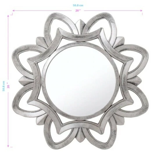 This artistic mirror adds pizazz to any room. The flowing design that frames the mirror creates a beautiful focal point, but can also be used as a complementary piece. Place it above a bed, fireplace, mantle or other area to add that final touch. The Emma Simple Elegance Mirror brings depth and sophistication to any space. This 22 x 22 mirror has a high quality silver backing. Ready to hang either vertically or horizontally with pre-attached hanging mounts.