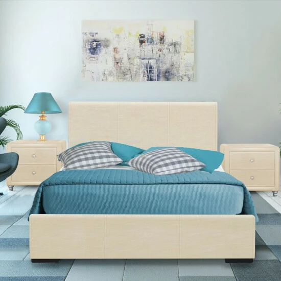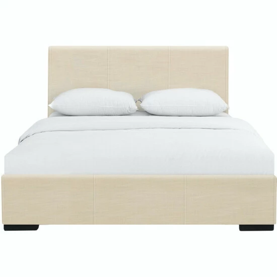 The Hindes Upholstered Platform Bed is the ultimate combination in comfort and style. With a clean & modern look, the Hindes Bed is a sleek and sophisticated addition to any bedroom. The upholstered headboard, accented by the low profile footboard-style frame, provides an elegant chic to the design. With this platform bed, no box spring is needed though can be used based on your mattress height preference. A complete slat system extends the life of your mattress. Don’t be fooled by other beds with 4 or 5 slats and expect the mattress not to sag. The 14 euro slats are properly spaced to provide full coverage and maximum support. Takes any standard mattress.