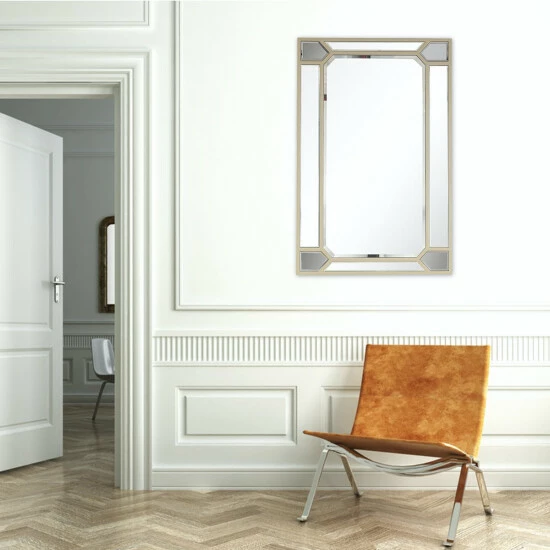 The Keeley Beveled Accent Mirror is the true definition of elegance with a simple yet eye-catching design and neutral tones. Its exquisitely crafted gray and white edges with unique geometric shapes make it a ravishing addition to a modern bathroom or traditional bedroom. This versatile mirror blends artistically with both vibrant and pastel color pallets and adds a new dimension to any room. Beveled 28.4 x 42.6 mirror has a high quality silver backing. Ready to hang either vertically or horizontally with pre-attached hanging mounts.