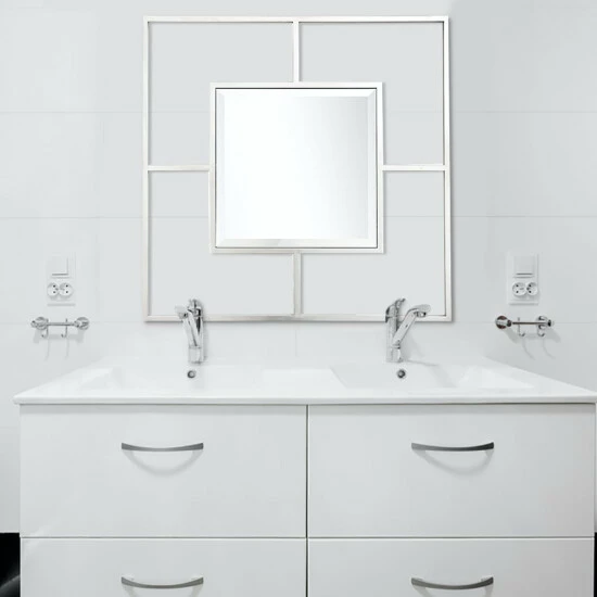 The Lidy Beveled Accent Mirror features an interesting design that complements modern and contemporary designs alike. Beveled edge, cut design and simple square shape make this mirror a great addition to your hallway, entryway, or bedroom. The mirror adds texture to your wall and gives an instant boost to your interior design. Mirror has a high quality silver backing. Ready to hang either vertically or horizontally with pre-attached hanging mounts.