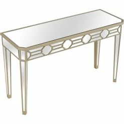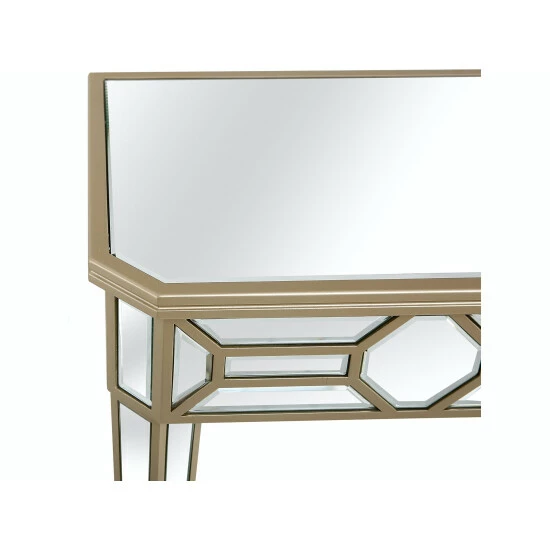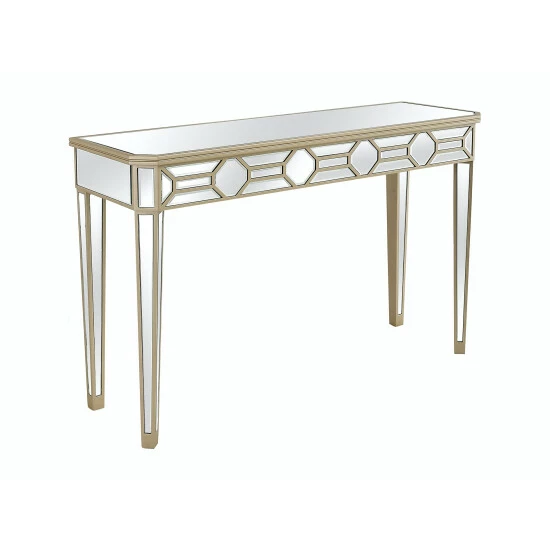 The Lilian Console is perfect for clients who enjoy modern style with a twist. The octagonal mirrors along the front take this console to new heights. The head-to-toe mirrored surface is supported by tapered legs, an extensive surface area and featured gold trim. Bring the Lilian Console today and add amped-up modern flair to your space.