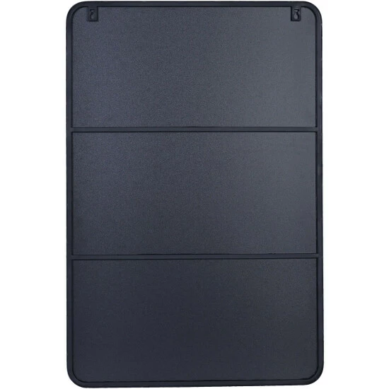 The Rectangular Deep Metal Frame Mirror measures 24 inches in width and 36 inches in length. Its pronounced frame cradles a stunning modern mirror perfectly and mimics a beautiful glass tray upright. Serve your guest in style and create an instant focal point in your home