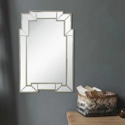 The Pinnacle Wall Mirror combines a beveled mirror exterior and crisp carved edges to create a mirror ideal for any room. At 42″ in height and 28″ in width, the Pinnacle Wall Mirror is aptly named.