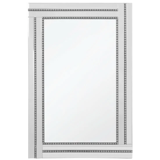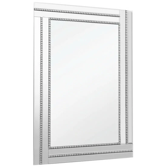 The princeton beaded accent mirror is a cleverly designed mirror that contains a beaded frame to add a certain sense of sophistication and class to this piece of mirrored wall art. This traditional rectangular mirror will blend with your industrial loft or country cottage theme while adding contemporary flair to any home decor in between.This 24 x 36 mirror has a high quality silver backing. Ready to hang either vertically or horizontally with pre-attached hanging mounts.