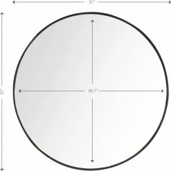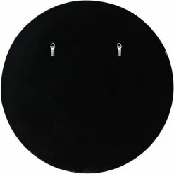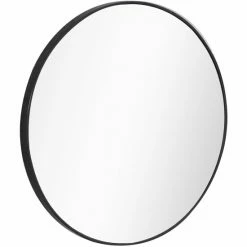 Enhance the look of your modern room or add a new dimension to your bathroom with Renata Accent Mirror. This simple mirror sports a sleek look with a neat circular shape and classic black frame. It fits beautifully with modern and contemporary design and accents any background color. Hang three in a row to create a timeless look.This 32 x 32 mirror has a high quality silver backing. Ready to hang either vertically or horizontally with pre-attached hanging mounts.