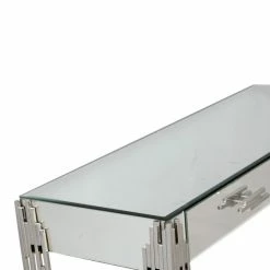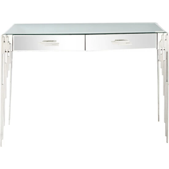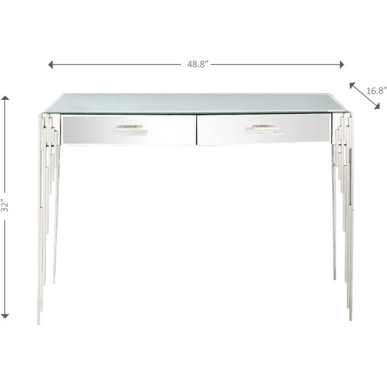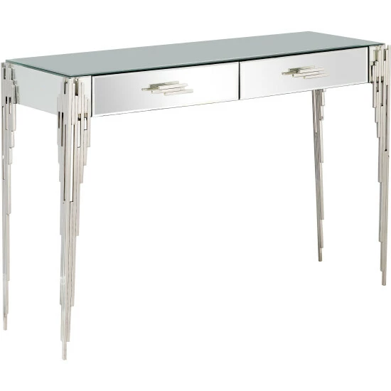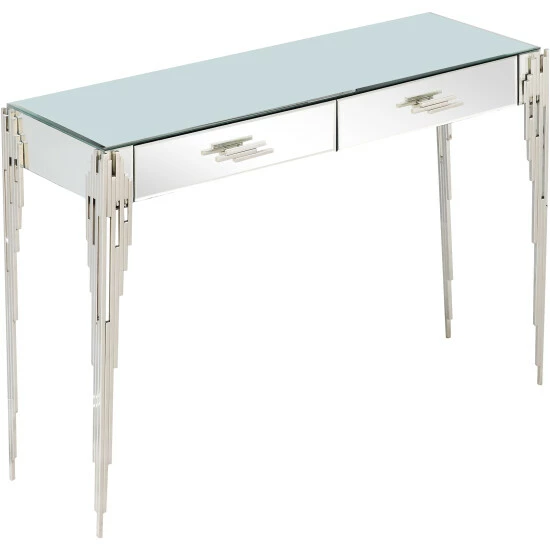 Delicate and elegant, the Skylar Mirror Console is the focal point of any room with its unique design and style. A free form series of rectangular stripes and beveled mirror finish give it a stylish appearance that blends effortlessly with rustic chic, modern or contemporary designs. Pair it with a contemporary wall mirror to create a more charming look.