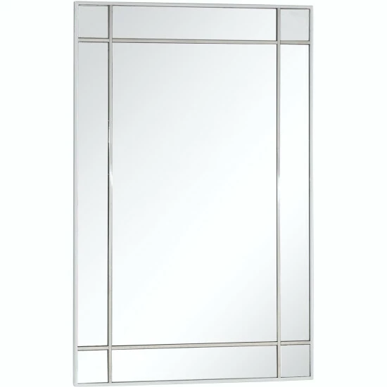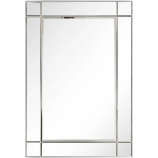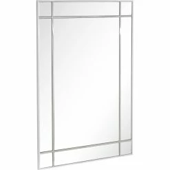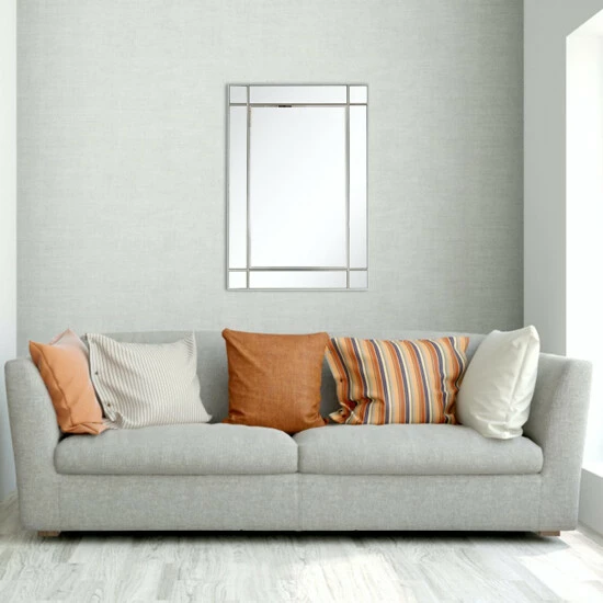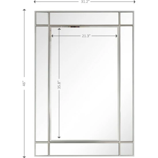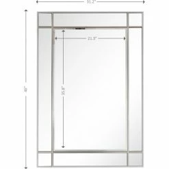 The Vera Beveled Accent Mirror features a simple design with square pieces on its corners for just a hint of decoration. Its rectangular shape and elegant silver frame make it a great addition to both modern and classic decor. This mirror alone is enough to create an illusion of space in your entryway, hallway, or bedroom. Beveled 31.2 x 46 mirror has a high quality silver backing. Ready to hang either vertically or horizontally with pre-attached hanging mounts.