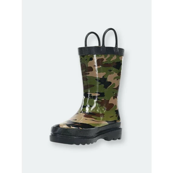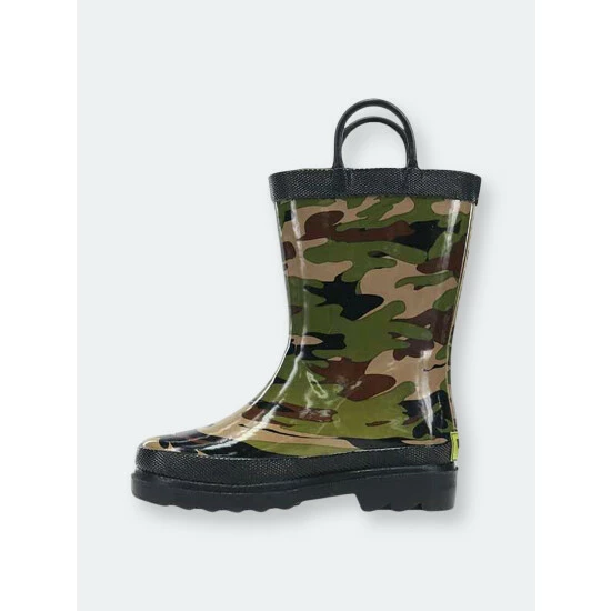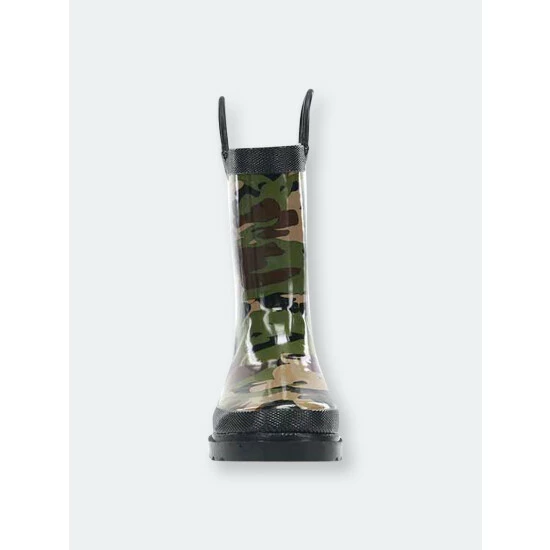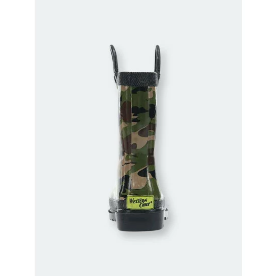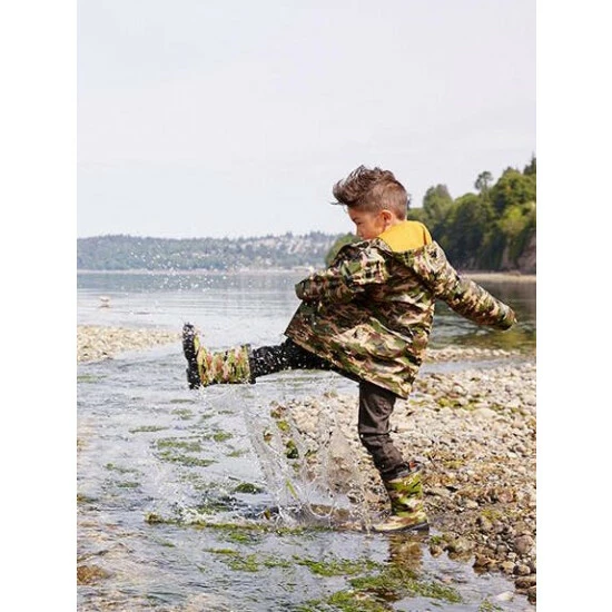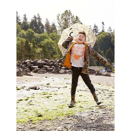 Cool camo boots for outdoor puddle stompers. A Western Chief rain boot with camo print fun for girls and boys. Easy pull on handles make is quick and easy to get out the door when getting dressed. Don’t forget the matching coat and umbrella!