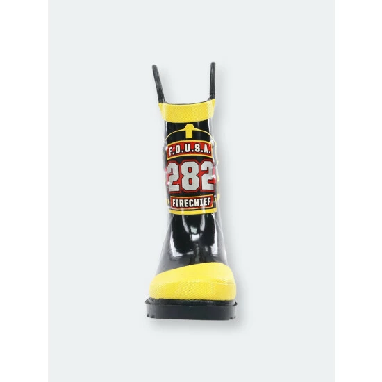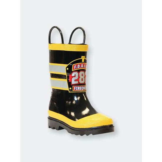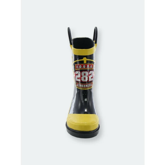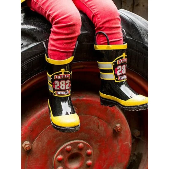 Saving kittens and helping mom around the house. No job is too small for our little F.D.U.S.A. heroes. These waterproof kids fireman boots have a matching jacket and umbrella to complete the look.