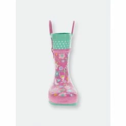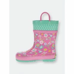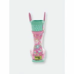 Pretty florals dance in pops of goldenrod, bubble pink, spring green, light lilac and cool sea foam mint. Swiss dot in mint with white dots. Sparkle bubblegum pink glitter padded detailing. Significant lug soles in coordinating seafoam mint provides extra traction. Waterproof easy on/off with helpful dual side matching bubble gum pink pull handles to promote self-dressing. Extra padded insole for comfortable footbeds. Waterproof and easy to clean.Western Chief has been making trusted family footwear since 1891. All products are handmade with the intent of keeping the wearer dry and comfortable in unpredictable weather.