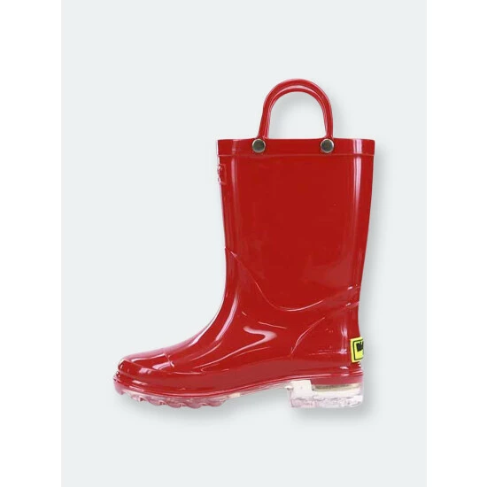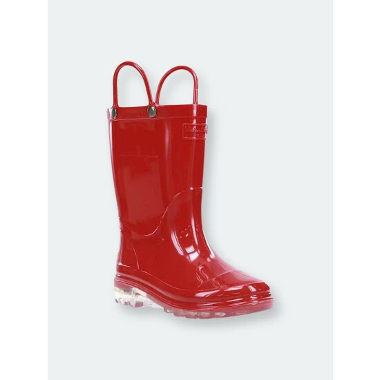 Traditional solid colored red lighted boot to go with any outfit. Boots light-up with every step.- 100% PVC- Polyester Lining- Removable EVA Insole for Comfort- Full Action Lights- Western Chief has been making trusted family footwear since 1891. All products are handmade with the intent of keeping the wearer dry and comfortable in unpredictable weather.