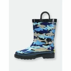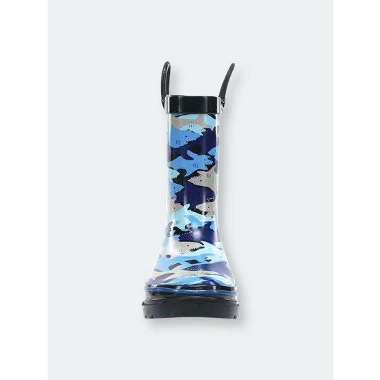 These sharks are ready to play in the water! Shark printed boots are a hit with kids and beg to be worn in puddles. Waterproof, easy to clean, and two handles for slipping on and off.- Waterproof Rubber Upper- Non-abrasive, Moisture-absorbent Fabric Lining- Two Pull Handles for Easy On, Easy Off- Removable Insole for Comfort- Easy to Clean- Western Chief has been making trusted family footwear since 1891. All products are handmade with the intent of keeping the wearer dry and comfortable in unpredictable weather.