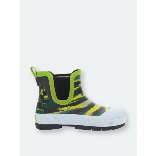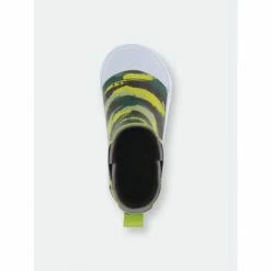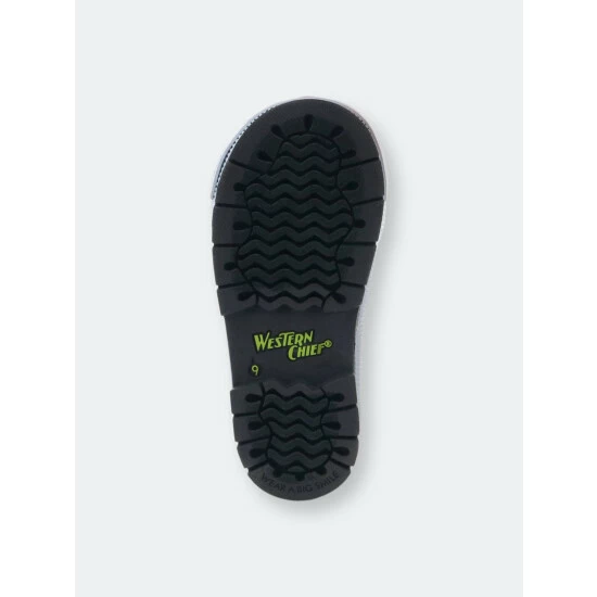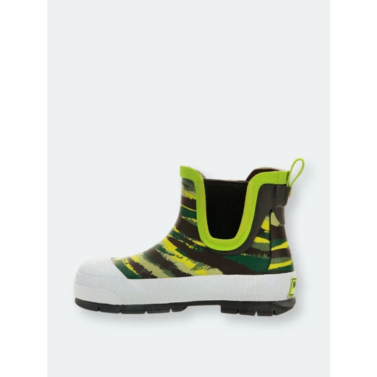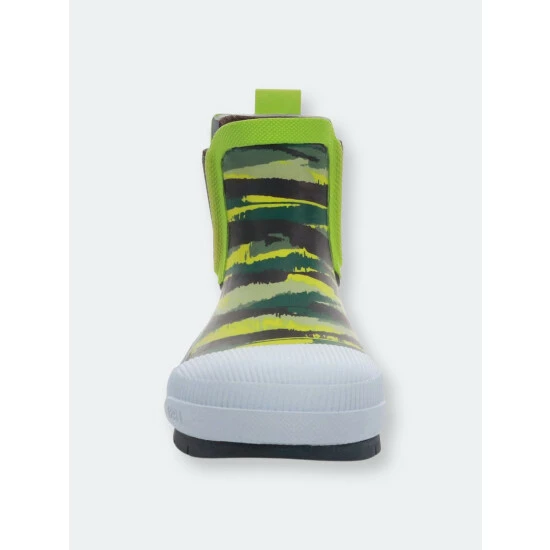 Sneaker inspired, olive colored waterproof chelsea boots available in toddler to youth sizing. Traction lug outsole and black stretch side gore for easily slipping boots on and off. Boots are easy to clean after a day outdoors.- Handmade waterproof construction with natural rubber- moisture-absorbent polyester cotton blend lining- Traction lug rubber outsole- Waterproof rubber upper- Western Chief has been creating smiles and making footwear for families since 1891.