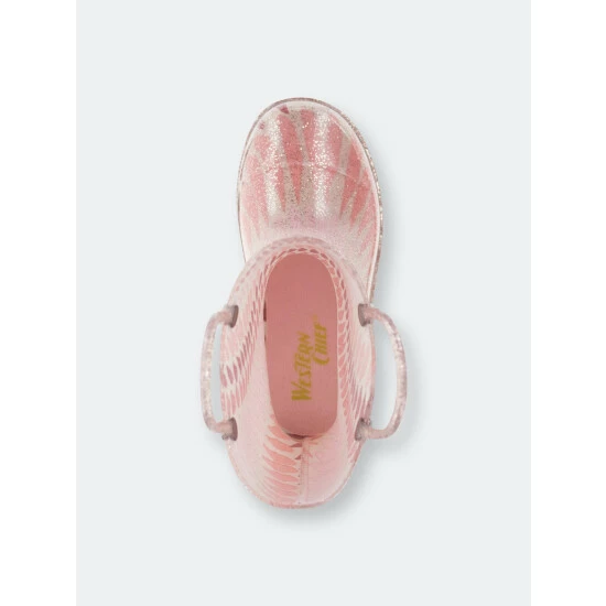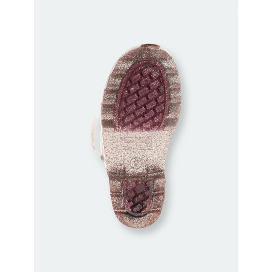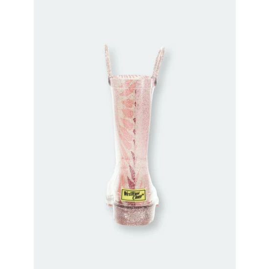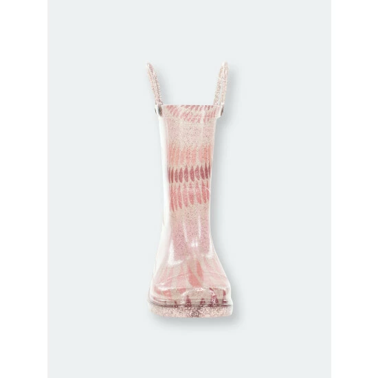 Pink and rose gold glitter tie dye rain boots. Clear glitter outsole and pull handles compliment this eye-catching print. These boots light-up with every step adding to the fun and provide an element of safety during play. Completely waterproof and easy to clean after a day of play.- Glitter infused boots so glitter doesn’t flake off- Three full-action lights- Polyester lining with removable insole- Pull handles to promote self-dressing- 7″ height- Western Chief has been making trusted family footwear since 1891. All products are handmade with the intent of keeping the wearer dry and comfortable in unpredictable weather.