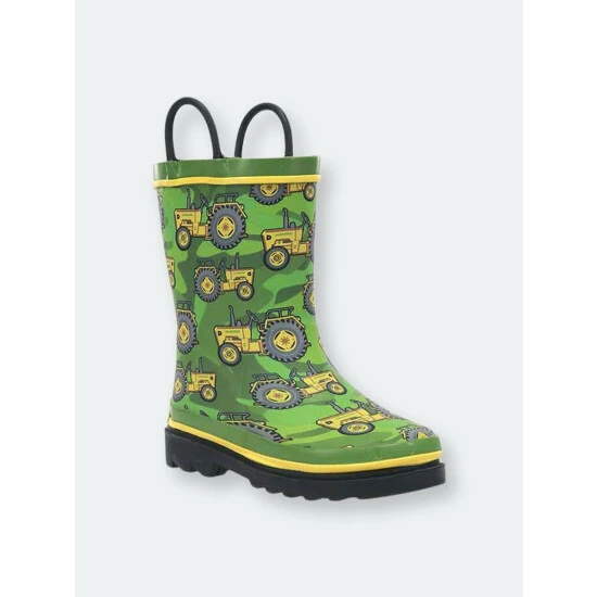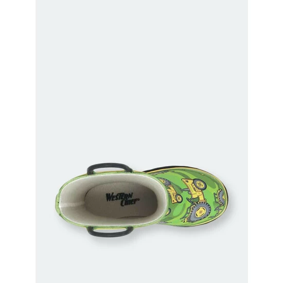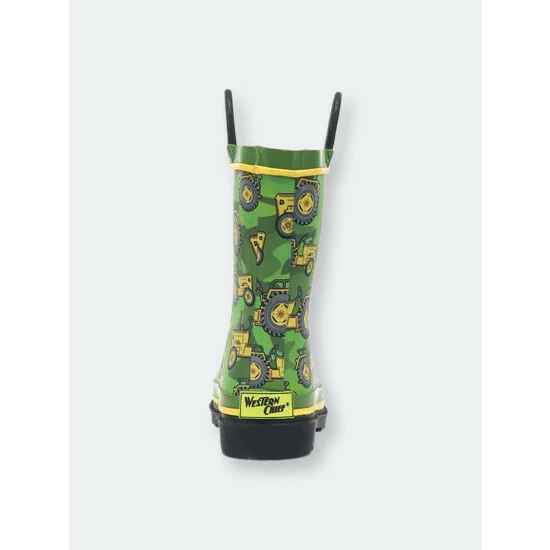 We can’t promises your son won’t take off outside in these strong, tractor rain boots from Western Chief. Green upper with yellow tractor print. A perfect gift this holiday season!