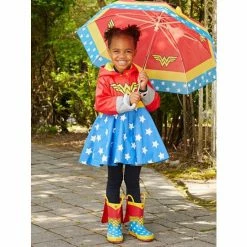 She might jump into character, fighting off danger with superhuman strength, quick reflexes, and super speed! Rain will be the least of her worries. The entire rain set (boots, coat, umbrella) will keep her dry while she spends hours at play.