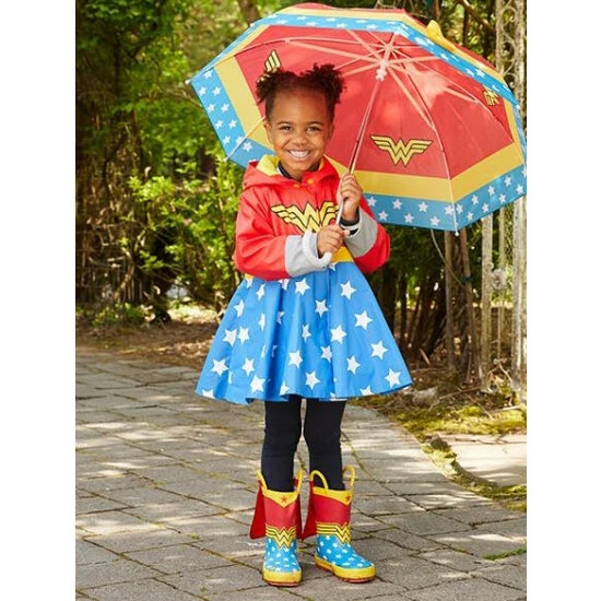 She might jump into character, fighting off danger with superhuman strength, quick reflexes, and super speed! Rain will be the least of her worries. The entire rain set (boots, coat, umbrella) will keep her dry while she spends hours at play.