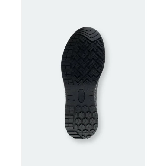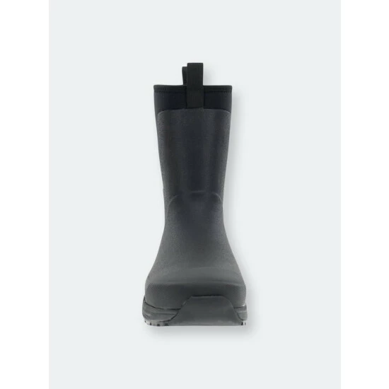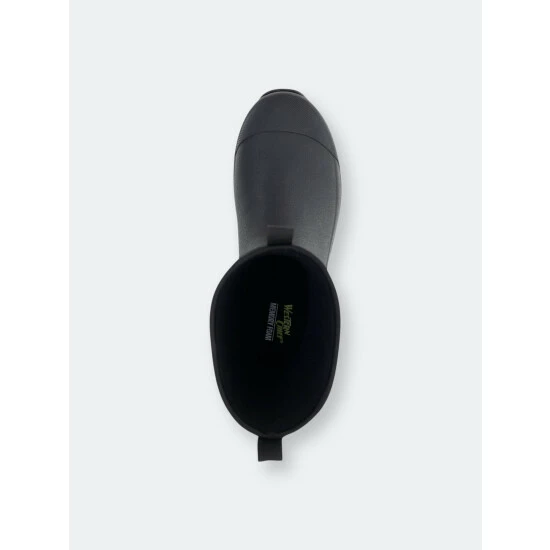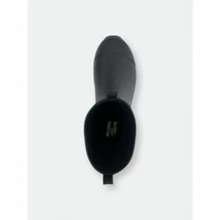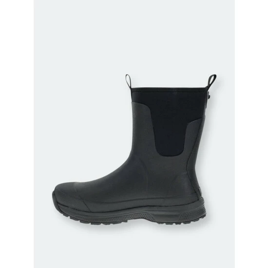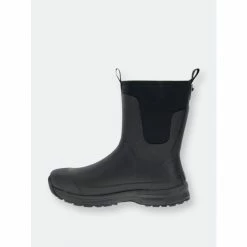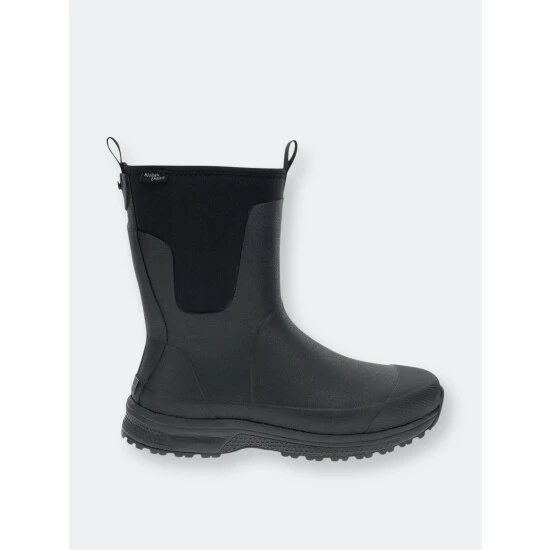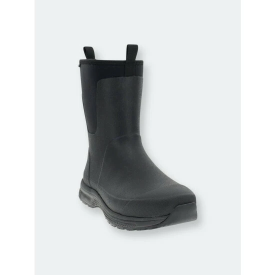 Solid black waterproof mid-calf boots. Neoprene lining that’s cold rated to withstand cool temperatures. Rubber traction outsole with a comfortable memory foam insole. Light EVA midsole.