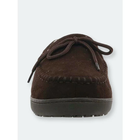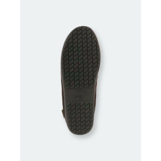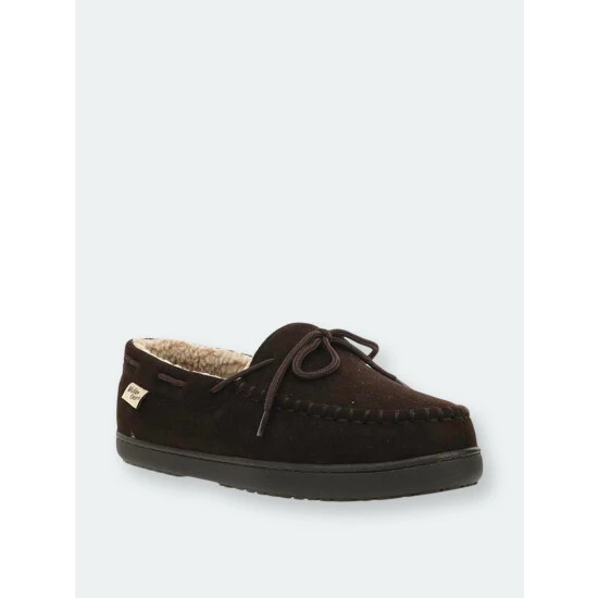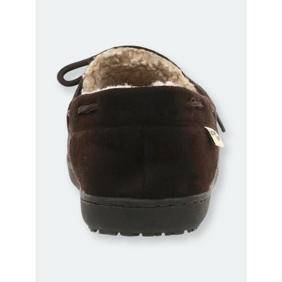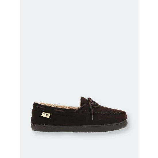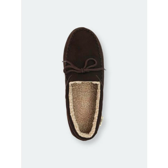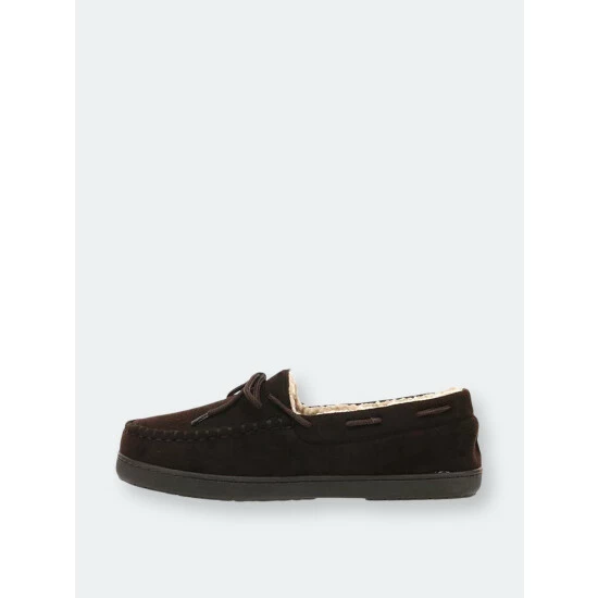 Casual moccasin slipper for men with lace detailing and cozy lining. A classic to cozy around the house in.