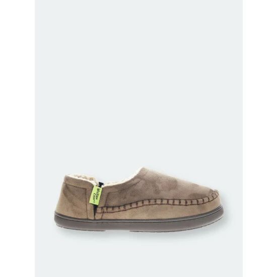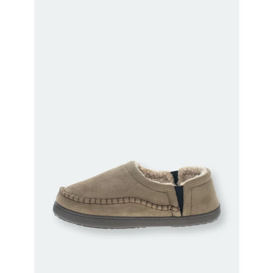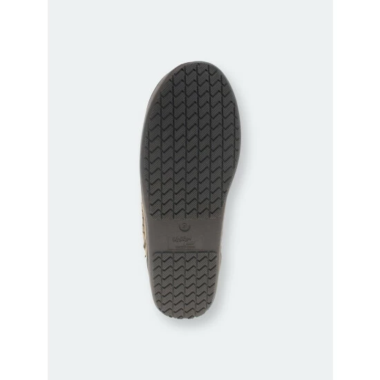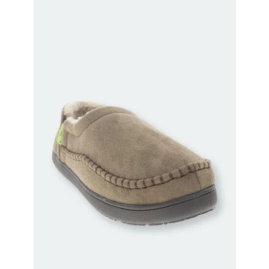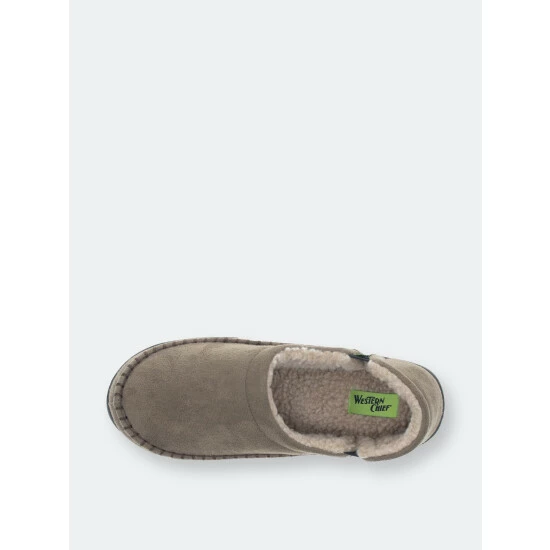 Microfiber light brown slipper with soft faux fur polyester lining. Brown TPR outsole for indoor and outdoor comfort around the home. Western Chief has been making trusted family footwear since 1891. All products are handmade with the intent of keeping the wearer dry and comfortable in unpredictable weather.