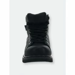 Black leather lace-up boots made on a Goodyear welt construction. Water-resistant leather on a black rugged rubber outsole. Footbed has a molded memory foam insole for comfort.Goodyear welt constructionWater-resistant genuine leatherPU molded memory foam footbedDurable pull tabsRugged rubber outsoleWestern Chief has been making trusted family footwear since 1891. All products are handmade with the intent of keeping the wearer dry and comfortable in unpredictable weather.