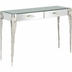 Camden Isle Skylar 48.8″ Silver Rectangle Glass Console Table Coffee & Side Tables